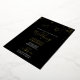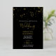 This wedding invitation features typography set in a stylish handwritten calligraphy foil script typography with event details in a classic white serif font on a solid black background with a top boarder of gold stamped confetti. The invite card reverses to a complimentary black colour. An elegant yet stylish choice for weddings and rehearsal dinners by. To see the entire wedding stationery suite by Victoria Grigaliunas of DoTellABelle visit www.zazzle.com/dotellabelle