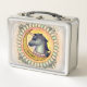 This is a standard metal lunchbox that appears to work just fine. We designed this box ourselves with an uploaded photo and custom text on the front and back. It looks absolutely beautiful except the front of the lunchbox is not centered like it shows in the photo. The print borders don't align with the inset flat part of the box where the preview photo online showed it perfectly centered in there. The back looks nice and centered though.