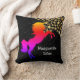 Vibrant BLACK throw pillow with brightly coloured UNICORN and gold coloured STARS. There is a placeholder name and year, which you can personalise with your own details. In the background and on the reverse, there is a customisable name in a subtle tiled pattern. You can add your name or text (up to approx 10-12 letters). A lovely non-babyish addition to your bedroom or living room decor. An ideal keepsake gift for Christmas and Birthdays, etc.