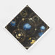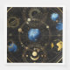 Beautiful blue and gold astrological and celestial symbols within golden circle and placed on an image of black velvet with gold flakes.