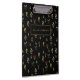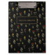 A black background, vintage wildflower pattern, and modern gold name clipboard are stylish.