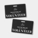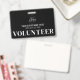 The design features clean and easy-to-read typography, ensuring clear identification. The background and text colours can be customised to match your organisation's branding or event theme. Whether for short-term events or ongoing volunteer programs, this badge provides a polished and functional way to recognise those giving their time.