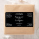 A label for cosmetics and/or soap products with a black background and white text. This label contains space for your product name, business name, product weight, ingredients, instructions, social media, and business address. This label measures 3.75 inches by 2 inches (95 mm by 51 mm) and is suitable for bottles with a diameter of 1.2 inches (31 mm) or more such as 4 oz (120 ml) bullet, cylinder, and boston round bottles. It can also be used for cosmetic jars and other types of cosmetics packaging.
