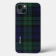 Handsome iPhone case done in the dark blue and green Black Watch tartan plaid. Personalise the white text, running down the left side, for yourself or as a great gift idea. Stylish way to protect your electronic device.
