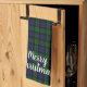 Handsome green and blue black watch tartan plaid is a classic choice for a kitchen towel. Featuring “Merry Christmas” message.