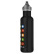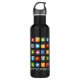 Black water bottle with colourful computer app icons and social media buttons. Personalise with your own name or text. Cool gifts for Birthday, Christmas and more.