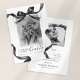 Celebrate your loved one with this simple yet elegant funeral thank you card. Designed on a striking white background, the front displays a cherished photo of the deceased framed with a chic black watercolor bow and ribbon. The back features another beautiful photo along with a personalized appreciation message to express heartfelt gratitude to family and friends. Tasteful, modern and refined — this card offers a dignified way to honour their memory while sharing sincere thanks. All text and photos are easy to customize.