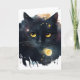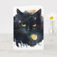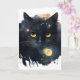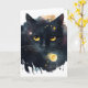 Black Watercolor Cosmic Cat with Yellow Eyes Card