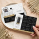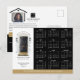 Beautiful and elegant real estate business 2024 calendar marketing postcard. Our design features our own hand-painted watercolor black front door. Accented with touches of gold on the mailbox slot, door handle, and door kickplate. Modern black outdoor wall lights and a burlap welcome doormat complete this charming real estate design. Personalise with your business name and optional text arced above the doorway as well as your contact info. The reverse side features option to display photo, logo and other marketing text and company information. Design includes a calendar for the 2024 calendar year. All illustrations are hand-painted original artwork by Moodthology.