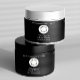 A waterproof label for cosmetics and/or soap products with a black background and white text featuring space for your logo. This label measures 8.25 inches by 1.75 inches (209 mm by 44 mm) and is suitable for jars with a diameter of 2.6 inches (66 mm) or more and a label height area of at least 2 inches (50mm). Most 8 oz (240 ml) and 16 oz (480 ml) jars fit this description, but check the jar specifications to be sure. This label makes a great choice for packaging beauty products that require larger labels like sugar scrubs, body butters, and thick lotions and creams.