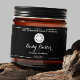 A waterproof jar label for cosmetics and/or soap products with a black background and white text and space for your logo. Customise it with your business and product information. This label measures 8 inches by 2.125 inches (203 mm by 54 mm) and is suitable for jars with a diameter of 2.55 inches (65 mm) or more and a label height area of at least 2.125 inches (54 mm). Most 8 oz (240 ml) and 16 oz (480 ml) jars fit this description, but check the jar specifications to be sure. This label makes a great choice for packaging beauty products that require larger labels like sugar scrubs, body butters, and thick lotions and creams.