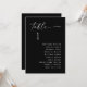 This wedding seating chart card is designed to display guest names for each table in a clear and organized way. Instead of one large seating board, each table has its own card, helping guests quickly find their place without confusion. The layout keeps the table number and guest list easy to read, making it both functional and visually clean. This format works especially well for receptions where you want a more seamless and intuitive seating experience. The black background paired with crisp white text creates a bold, high contrast look that feels modern and refined. It adds a polished touch to your tables while maintaining a minimal, structured design. A great choice for formal, modern, and black-tie weddings where clarity, organization, and a sophisticated aesthetic are key. Available as both a printed card and a digital download.