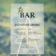 Modern wedding signature drinks bar menu features the Bride and Groom's signature drinks and room for additional drink choices.
