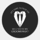 Black Wedding Suit and Tie Groomsman Proposal Classic Round Sticker