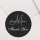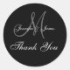 Black Wedding Thank You Monogram Names Classic Round Sticker