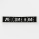 Black welcome home banner with a white border