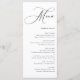 Set the tone for your reception with this customisable wedding menu card featuring whimsical calligraphy and a clean, elegant layout. Designed to suit any wedding theme or season, this menu card adds a thoughtful finishing touch to your table settings while keeping guests informed about the meal.