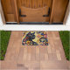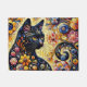 Black Whimsical Cat Abstract Floral Painting Art Doormat