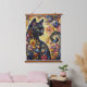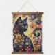 Black Whimsical Cat Abstract Floral Painting Art Hanging Tapestry