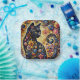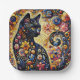 Black Whimsical Cat Abstract Floral Painting Art Paper Plate