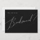 This black whimsical script bridesmaid proposal card is perfect for your classic simple black and white minimal modern boho bridal party proposal. The design features elegant, delicate, and romantic handwritten calligraphy lettering with formal shabby chic typography. The look will go well with any wedding season: spring, summer, fall, or winter! The product is editable and has plenty of blank space, so you can add your own graphics or pictures if you want to customise it! Please feel free to reach out with any questions regarding the product's design; we are happy to help!