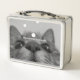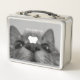 This is a standard metal lunchbox that appears to work just fine. We designed this box ourselves with an uploaded photo and custom text on the front and back. It looks absolutely beautiful except the front of the lunchbox is not centered like it shows in the photo. The print borders don't align with the inset flat part of the box where the preview photo online showed it perfectly centered in there. The back looks nice and centered though.