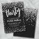 Introducing a chic and celebratory 30th birthday party invitation, perfect for marking this special milestone in style. The elegant design features a mix of silver glitter confetti, adding a touch of fun and festivity. At the top, "Thirty" is prominently displayed in bold calligraphy, setting the tone for an unforgettable celebration. The text combines script and simple modern fonts in a sleek black and white colour scheme, giving the invitation a classic yet modern vibe. The glitter continues on the back, adding an extra touch of sparkle to the overall design. This invitation is perfect for celebrating 30 years of life with flair. The font and background colours can be customised to match your style. Please note it is faux glitter, with no foil or shimmer. Black And White 30th Birthday Invitation Silver Glitter Confetti Fun Stylish Sassy Cute.