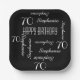 Black White 70th Birthday Party Repeat Name Square Paper Plate