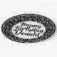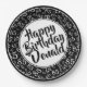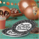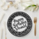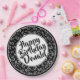 This over-the-hill design has a black and white random number pattern with a white milestone number 85 repeated in varied sizes and angles. There is a white circle in the centre for your text and black and white rings around the rim.