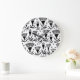 Black White Abstract Flowers: Elegant Pattern Large Clock