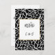 Our Black White Abstract Foliage Pattern RSVP Card completes your wedding stationery. With a portrait format, a white leaves outline pattern frames a text field. With the card turned around, a white background holds black text. There is the RSVP deadline and the recipient is encouraged to write the number of attendees, their dietary requirements and a favourite song that entices to dance. Customise the text to reflect your event. Explore colour customisation options by following the edit link. For more wedding inspiration, visit www.KBMD3signs.com. For custom design or customisation enquiries, contact us at info@KBMD3signs.com.