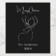 Black background, and a white abstract one line reindeer. Personalise and add a name and year. Text: Merry Christmas