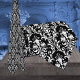 A black and white wedding neck tie featuring a white floral damask pattern against a solid black background.