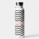 Black White and Blush Chevron Water Bottle