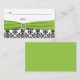 This black and white damask placecard with a chartreuse green FAUX ribbon and jewelled brooch matches the wedding invitation shown below. If you require any other matching items, please email your request to niteowlstudio@gmail.com.