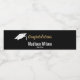Congratulations to the graduate! Your custom text appears in white and faux gold on a black background. Personalise with your message, honoree's name, graduation year, or other desired text. A white graduate's cap is next to the text.