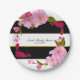 Black White and Gold Modern Floral Chic Glam Party Paper Plate
