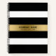 Black and white stripes pattern with a gold stripe accent and customisable text. Elegant chic modern design.
