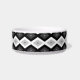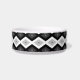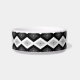 This is a heavy, durable bowl decorated with Tibbies of many colors, the perfect size for hungry/thirsty Tibs. The design is interesting and printing clear.