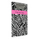 Black and white zebra print. The design features a black and white zebra pattern and a hot pink band in the middle eith your custom text.