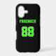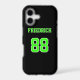 Add a name and number(s) to personalize this custom black, white, and neon green sports jersey inspired phone case. It is an excellent gift for a sports fan or athlete. The options to change the color and font sizes are available.