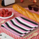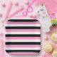 Black, White and Pink Stripes. Striped image can be rotated or straightened across and add text to front and/or back.