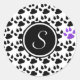 Black, White and Purple Paw Print Classic Round Sticker