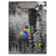 Need a clipboard to keep up with work papers, household lists, or gardening ideas? This unique clipboard features a black--white photo of a garden with a happy rainbow twist. Customise it with your own initials in gold - just type them in where indicated. Or, if initials aren't your thing, then delete the placeholder initials. The trees and flowers appear almost monochromish, mostly black-and-white with slightly coloured hues. The garden visitor, sitting on a bench, appears to be dressed in vivid rainbow colours. This image is derived from an original photograph of a beautiful botanical garden, with digital filters applied to give the visitor a shirt of many colours. This clipboard is a reminder of summer gardens where you can keep your important information together, wherever you go, in personal style.