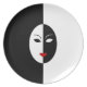 Dining/party plate with striking and original modern art mask design in black, white and red.