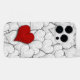 A unique pattern of scattered hearts in black and white with one red heart accenting the illustrated pattern that celebrates love. This is a hand drawn original illustration with hearts that look like a sliced onion with layers. A fun phone case all year, it's particularly nice during the winter months around Valentine's Day.