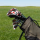 Eye catching black, white and red graphic designed golf head cover. Also see the matching golf towel.