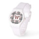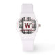 A classic and cosy plaid pattern gets a stylish twist by combining a classic combination of a white background with black and grey bars with a rich red accent. This watch is available in a variety of styles, colours, and sizes, including sizes for men, women, and children. Customise the monogram on this watch with your initial to make it uniquely your own.