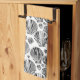 Kitchen towel in a pattern of black, white, and shades of silver to graphite grey / grey semi-abstract sea shells on a white background