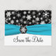 Black, White, Aqua Snowflakes Save the Date Card